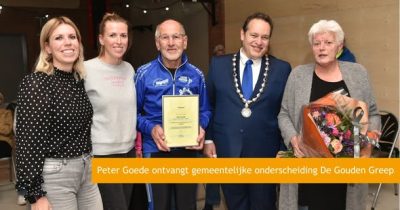Burgemeester Marvin Polak heeft de gemeentelijke onderscheiding De Gouden Greep uitgereikt aan Peter Goede. Een eerbetoon aan een man die niet alleen duizenden uren vrijwilligerswerk heeft verricht, maar vooral een onmisbare schakel is in het verbinden van mensen en het versterken van ons dorpsleven. De burgemeester heeft mooie woorden klaar: ‘Als ik hoor wat de inzet van de heer Goede betekent, dan gaat het niet alleen om de uren. Het gaat om de verbinding die hij brengt, het voorbeeld dat hij stelt en de sporen die hij achterlaat. Over hem wordt gesproken als de stille kracht met een groot hart – iemand die zonder veel woorden een wereld van verschil maakt. Deze onderscheiding is meer dan verdiend.’