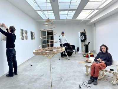 Ossip maakt als onderdeel van zijn afstudeerproject een verhaal over een klokkenmaker die voor iedere klant een klok maakt met wat voor de klant belangrijk is. “Ik maak me zorgen als ik zie dat alles zo efficiënt, zo snel mogelijk moet en alles binnen een bepaald tijd. Wordt er wel over de gevolgen voor de toekomst nagedacht als we alleen maar alles sneller en efficiënter willen? Ik ben heel gefascineerd door de systemen en mechaniek van tijd.” Op de expositie is een pendule te zien die normaal precies op de seconde draait, maar daar heeft Ossip een houten spiraal omheen gemaakt met een magneet, waardoor de pendule net even anders draait. Ook zijn windgong en schommelbankje hebben te maken met hoe tijd werkt en hoe de bezoeker deze ervaart.