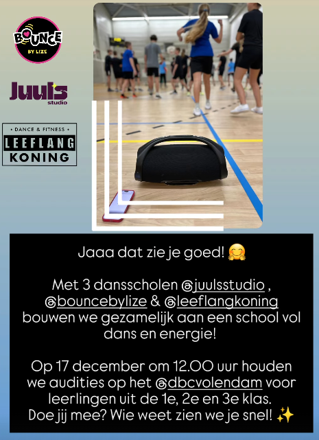 Aan het einde van de workshops konden leerlingen zich inschrijven om auditie te doen voor Team NL Moves (voorheen Olympic Moves). Deze audities zijn woensdag 17 december om 12u!