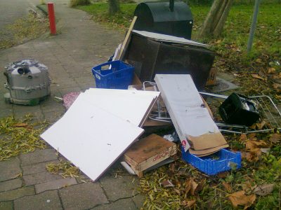 Begin november, een dag na het ophalen van het grof vuil, besloot een buurtbewoner om zijn fauteuil en enkele andere spullen bij het grofvuil naast de container in de Buikslotermeerstraat te zetten. Een dag te laat dus. Enige tijd later heb ik de gemeente een bericht gestuurd met het verzoek om deze rommel weg te halen. Hier werd geen gehoor aan gegeven. Met als gevolg dat in het weekend van 29 en 30 november een behoorlijke hoeveelheid grofvuil naast de container werd gestort. Er liggen al spullen, dus dit kan er nog wel bij, moet de storter gedacht hebben. En zoiets gebeurt altijd ’s avonds laat als het donker is, zodat ze niet gezien worden. Op maandag 1 december, precies een week laten dus, heb ik hier melding van gemaakt bij de gemeente. Met als resultaat nul komma nul. Mensen die nu langs deze stortplaats lopen, gooien gewoon hun afval er bij neer. Het lijkt mij voor de mensen die naast en tegenover deze vuilnisbelt wonen geen pretje als je hier de hele dag tegenaan moet kijken.