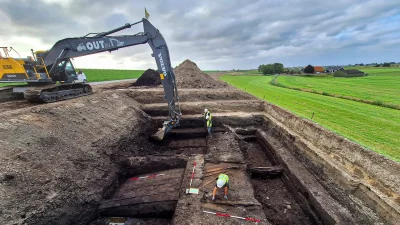 Bij het verdronken dorp Ethersheim groef men in 2023 profielsleuven in de dijk: doorsnedes dwars door de dijk heen. Dit had een bijzondere vondst tot gevolg: een middeleeuwse sluis. “Hét bewijs dat we al eeuwenlang inventief bezig zijn met waterbeheer,” aldus Jan-Willem Oudhof, die het archeologisch onderzoek leidt namens de Alliantie Markermeerdijken. In 2023 was echter al bekend dat dit slechts een deel van de sluis was. De rest zou onder de weg achter de dijk kunnen liggen, als er tenminste nog wat van overgebleven was. Dus toen de weg afgelopen zomer verplaatst werd, werd het spannend: ligt het er of ligt het er niet?