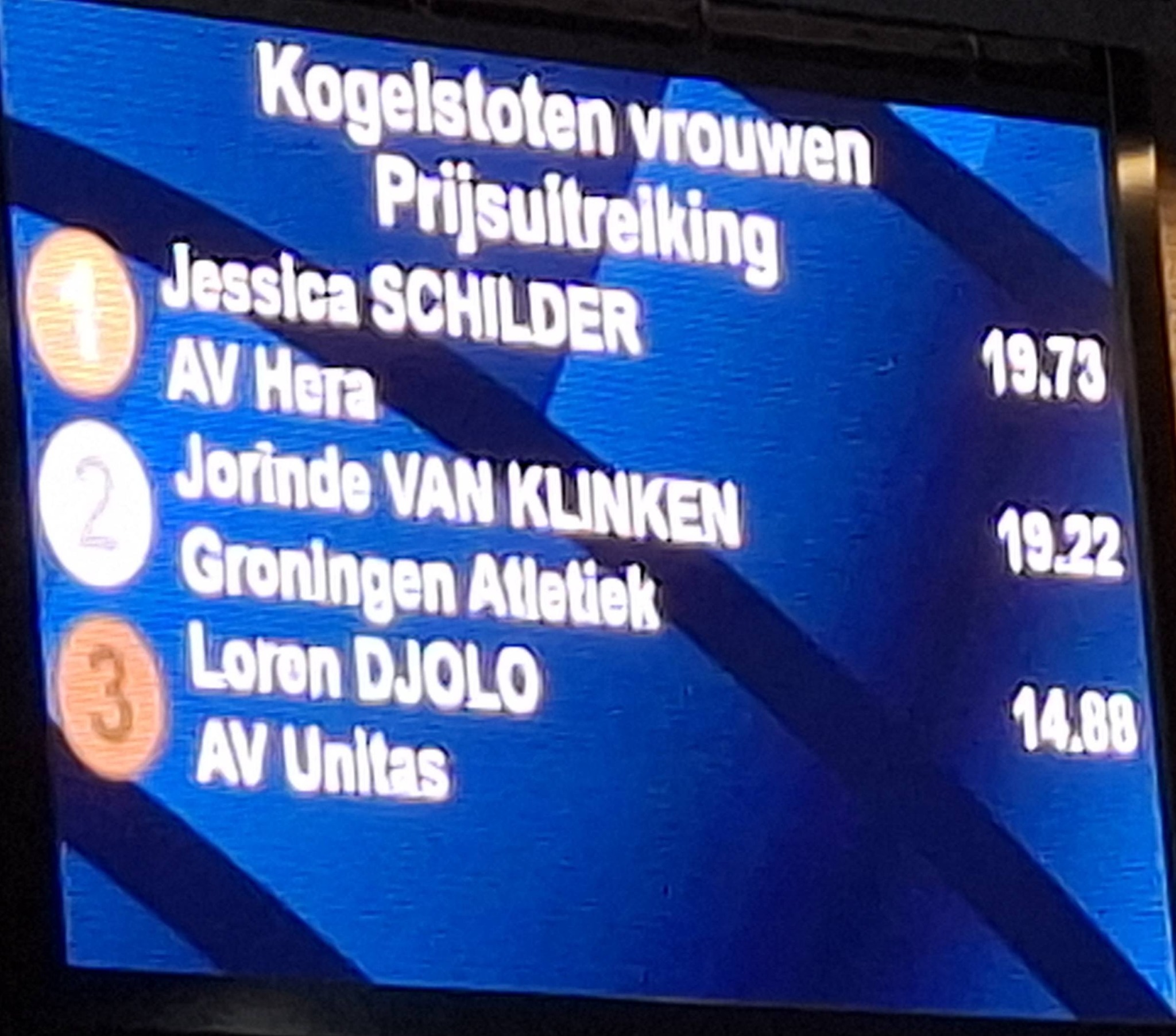Het was niet best, oordeelde Jessica Schilder. Maar haar eerste worp op het NK bleek zaterdag voldoende om toch ’gewoon’ de titel te veroveren in het kogelstoten, zoals iedereen dat ook van de 26-jarige Volendamse verwachtte. Haar eerste poging leverde een afstand van 19,73 meter op en eigenlijk was daarmee alle spanning uit de strijd verdwenen. Schilder had woensdag al een wedstrijd gedraaid en dat voelde ze zaterdag nog. Ondanks de vermoeidheid had ze geen moment getwijfeld om mee te doen: ,,We zijn allemaal wel eens moe. Ik vond het belangrijk om hier te zijn, om de jeugd te inspireren’’, meldde ze in de catacomben van Omnisport in Apeldoorn.