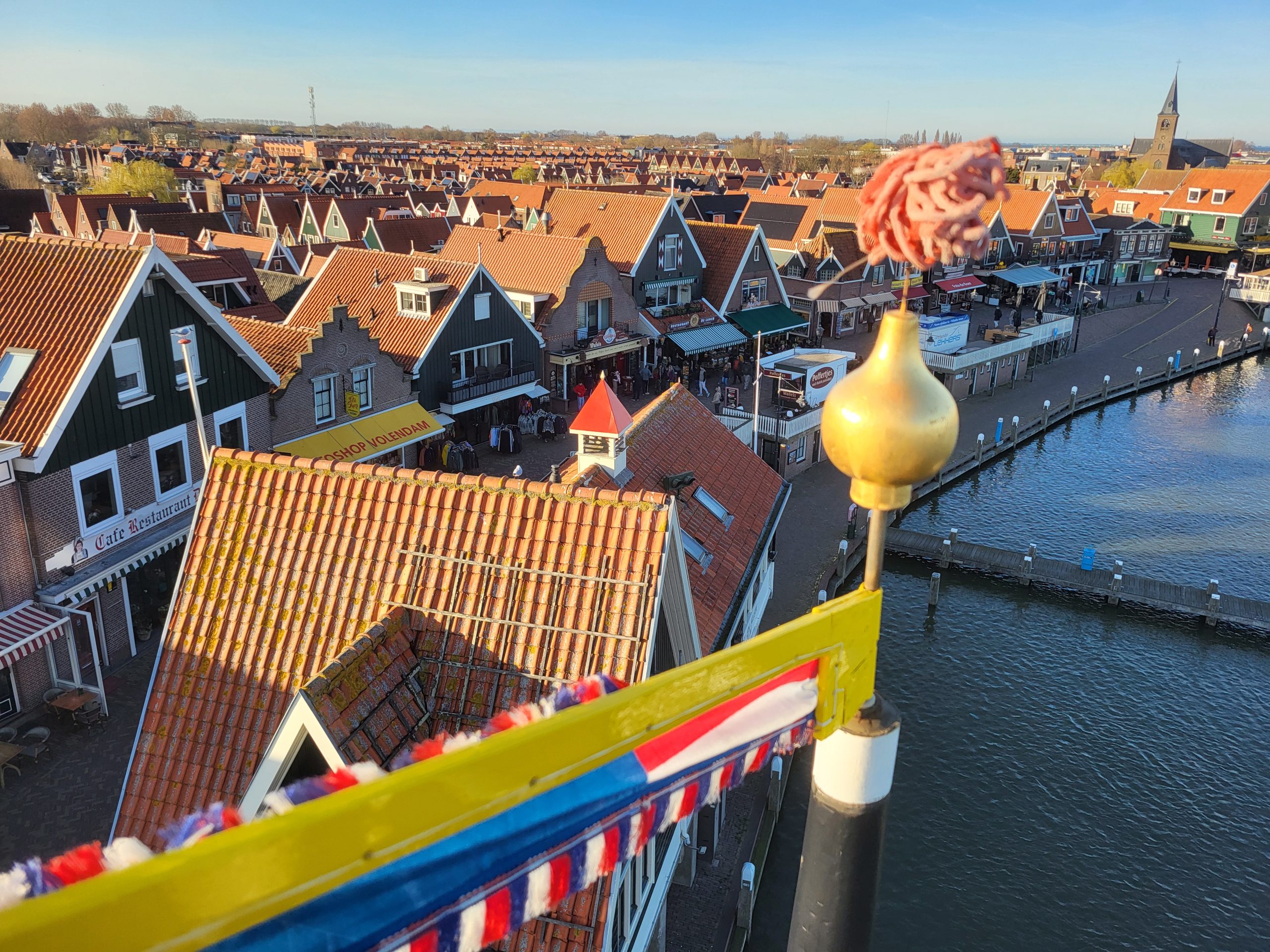 Te beginnen op 18 meter hoogte, bij de topjes van de masten: nieuwe vleugels (wimpels), daarboven de vergulde mastkloot en helemaal bovenaan de ‘hemelboender’.